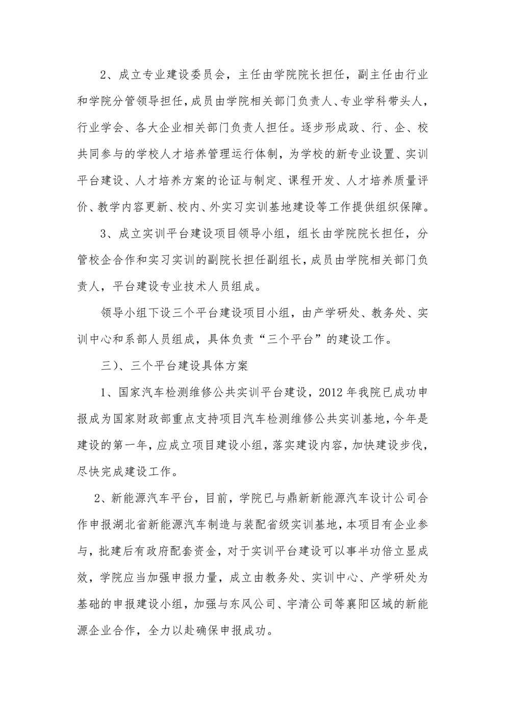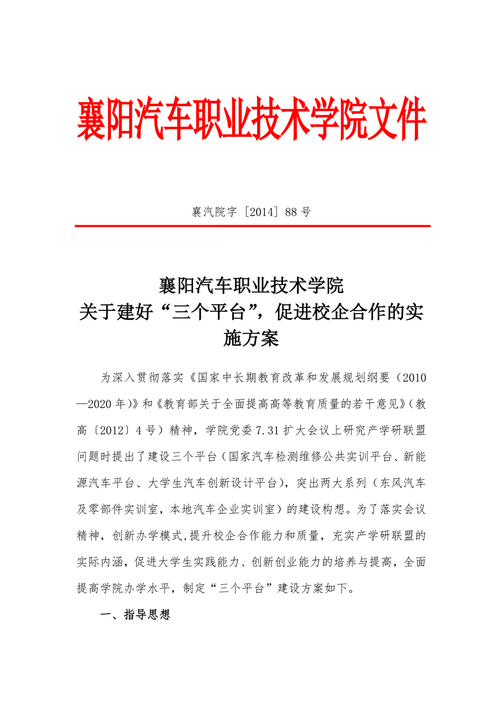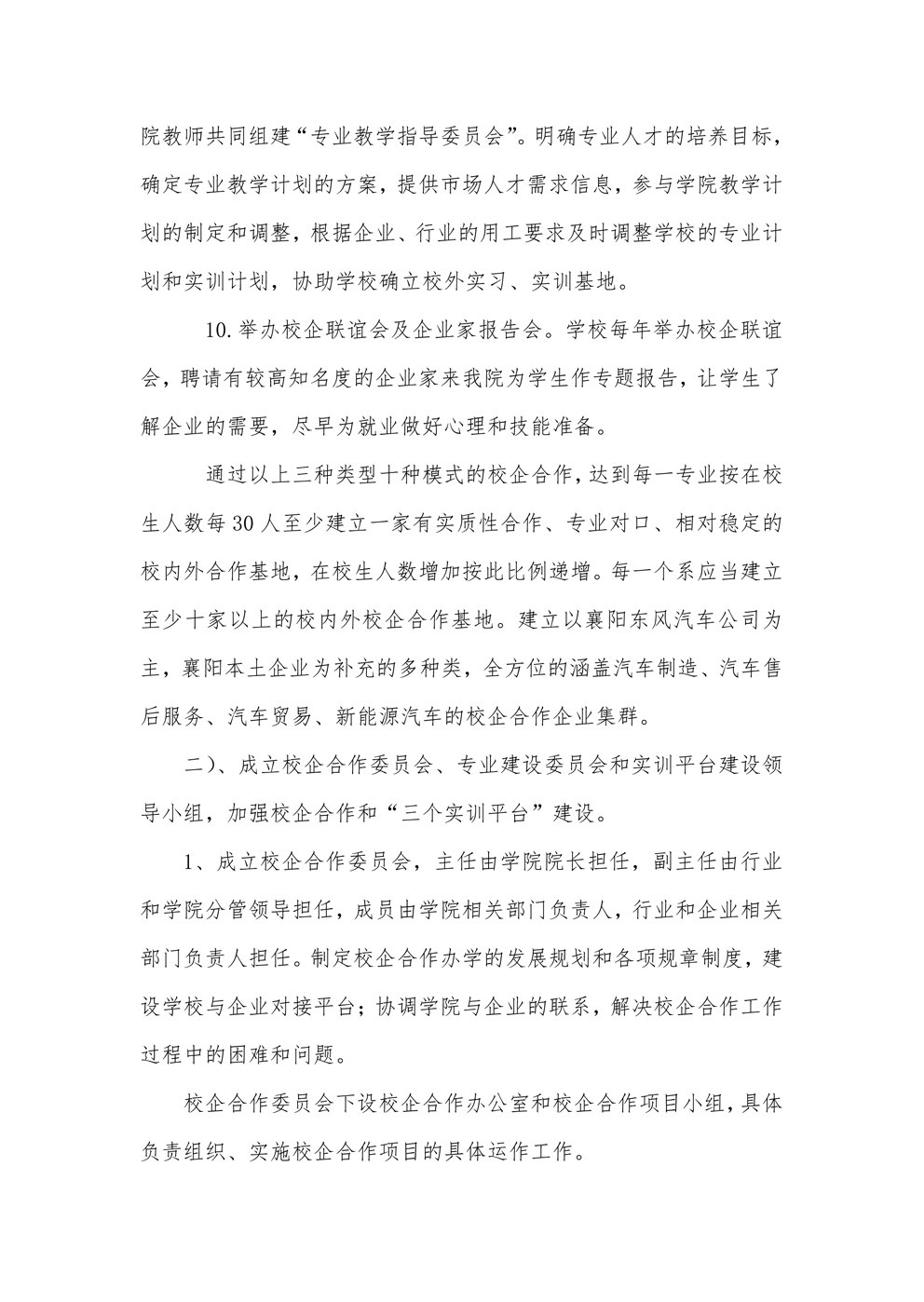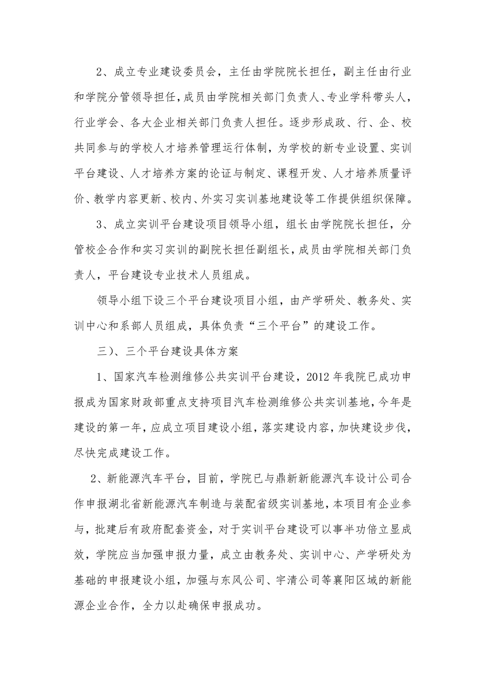 关于建好“三个平台”,促进校企合作的实施方案