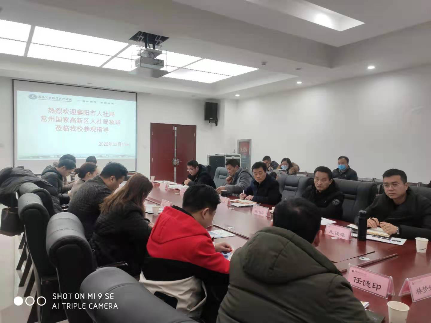 2020年12月17日,襄阳市人社局和常州国家高新区人社局领导和常州部分企业负责人一行莅临我校参观考察。