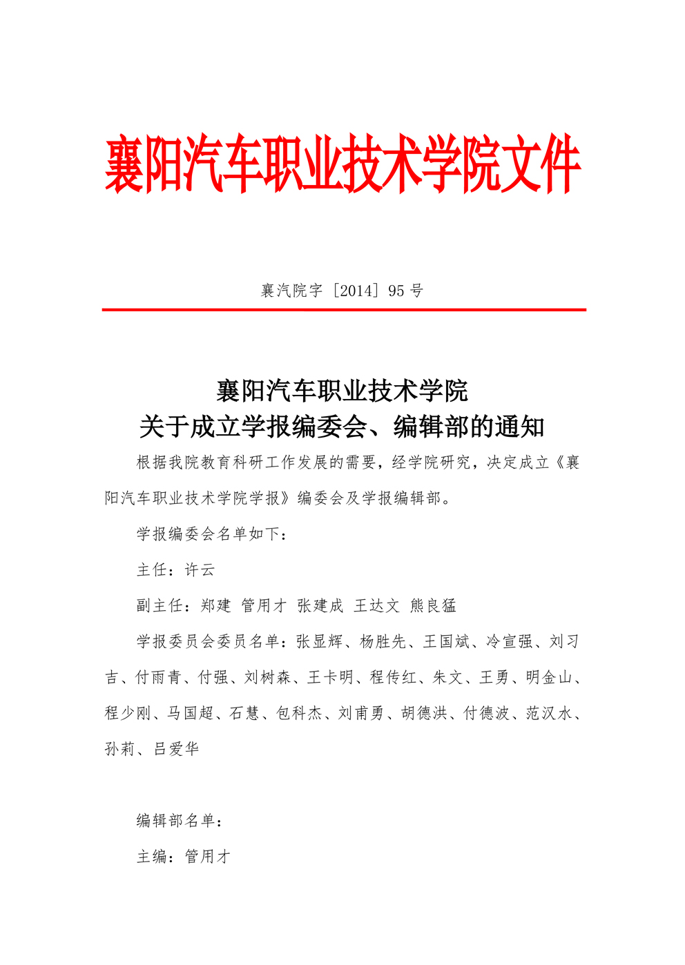 关于成立学报编委会、编辑部的通知