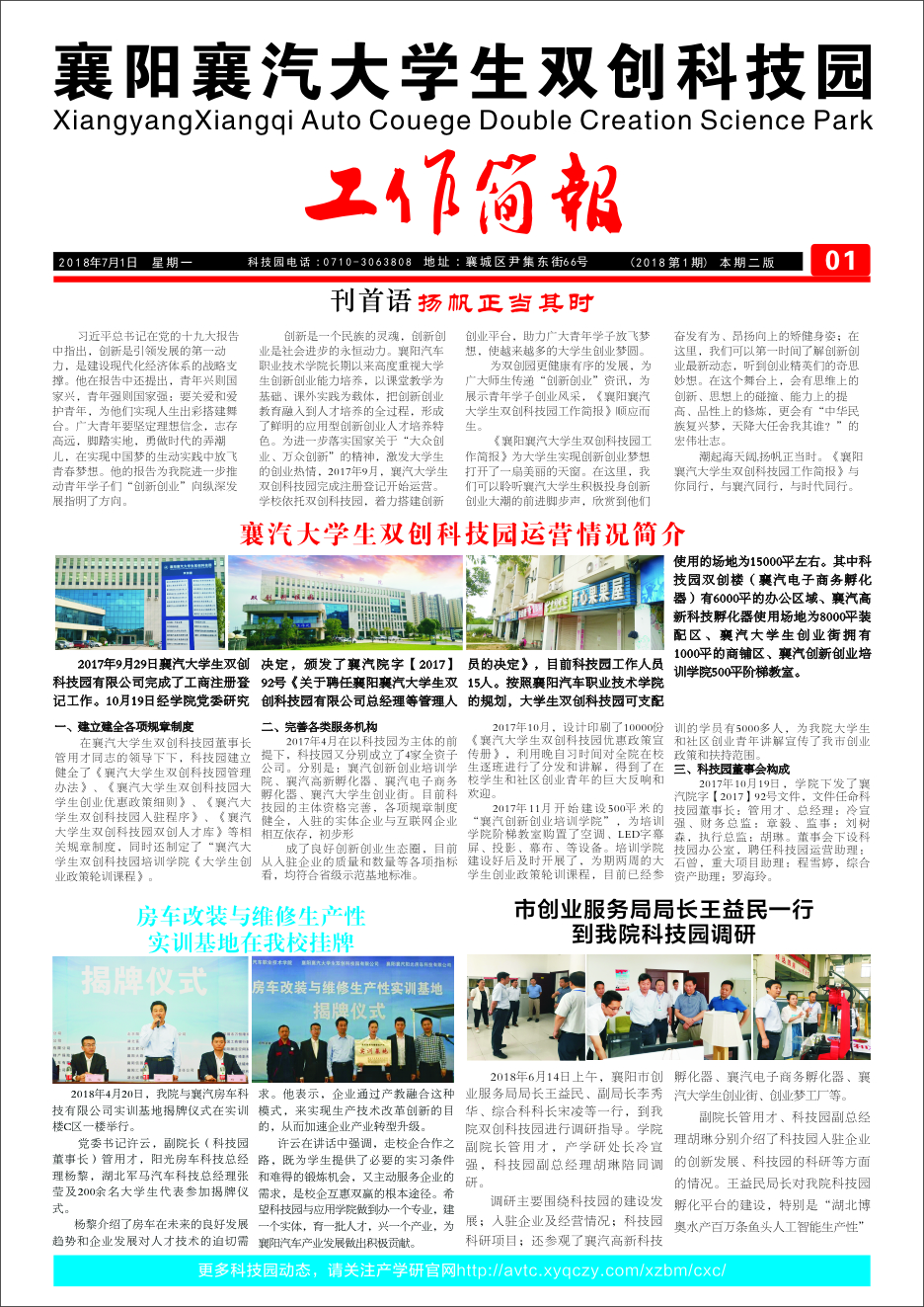 襄阳襄汽大学生双创科技园第一期工作简报